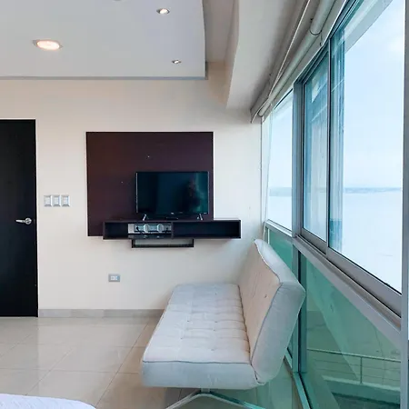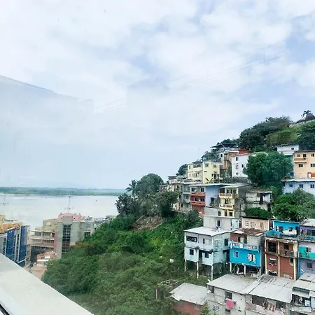 Lujoso Depa Con Piscina - Jacuzzi Y Vista Al Rio Desde La Habitacion Guayaquil est situé à seulement 1 km des Jardines del Malecón Simón Bolíva et à seulement 300 mètres de Museo Barcelona Sporting Club. La résidence avec un sauna se trouve près du Musée des Équipes du Chantier Naval.