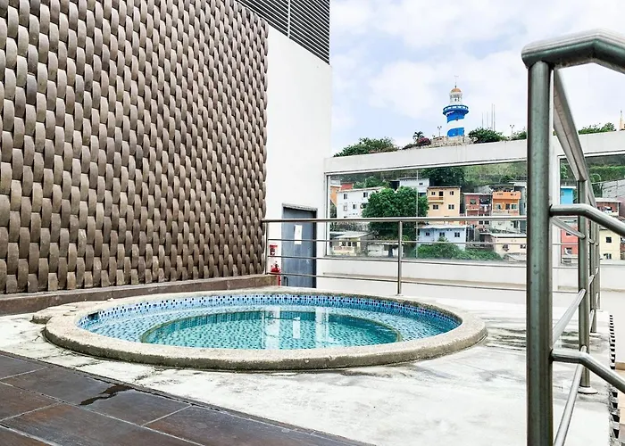 Lujoso Depa Con Piscina - Jacuzzi Y Vista Al Rio Desde La Habitacion vient aussi avec une cuisine équipée. Vous pourrez également prendre un bus à l'arrêt de bus Las Penas, située à 10 minutes à pied, pour explorer le reste de Guayaquil. De plus, la présence d'un centre de fitness assurera le bien-être physique des invités.